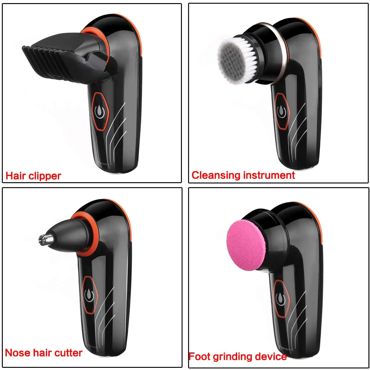 В комплект входит: | 5 в 1 другие вложения: 1 x триммер для бороды (машинки для стрижки волос) 1 x триммер для носа 1 x щетка для очистки лица 1 x средства ухода за кожей стоп шлифовальная машина 1 x Держатель подставка 1 x электрическая бритва с Лысой головкой 1 х адаптер с USB подключением Руководство пользователя (1 шт.) |