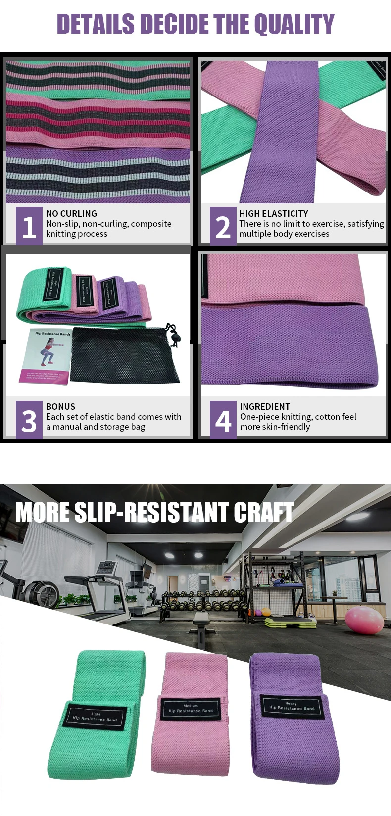 Лидер продаж Amazon резинки для ног и ягодиц Нескользящие эластичные повязки на бедра 3 уровня набор эластичных повязок