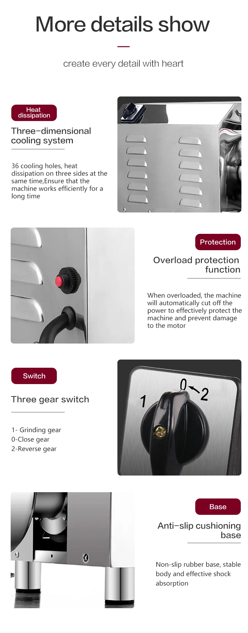 1) There is little noise, and the machine is stable when it works.