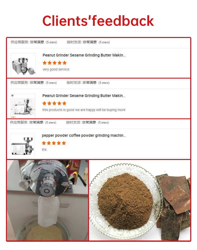 6)Stainless steel ,structure is simple, low energy, easy to clean, is the ideal grinding equipment.