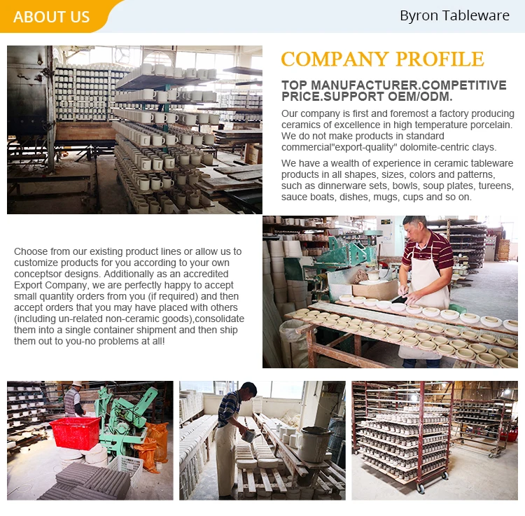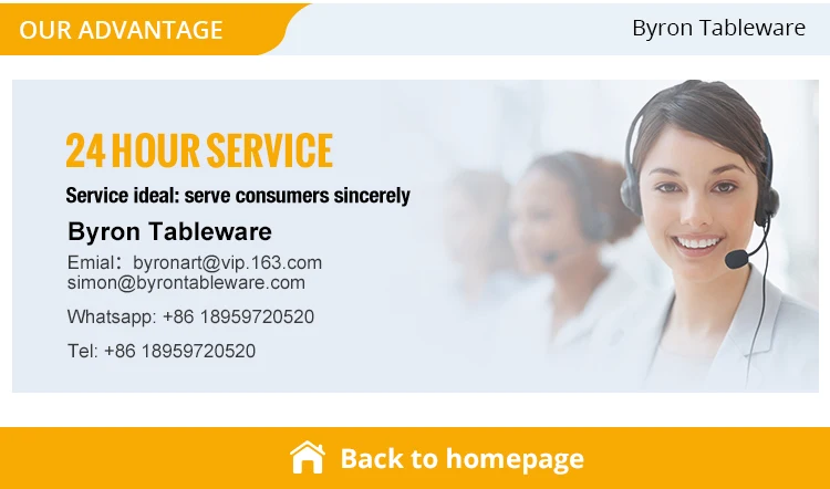 Shipping: 1:Door To Door service. Ceramic dinnerware are heavy, if above 200 kgs advise shipping via sea. It's cheap and would send to your door. You needn't do anything for custom just waiting in your company. 2: Pls contact me if you want place order and tell me your address I would find a cheapest method and quote the freight. 3: Agent service. If you need other goods from China, you can ask your supplier send goods to my warehouse then I would repacking it and send to you with my goods. The service total free just for provide good service. |