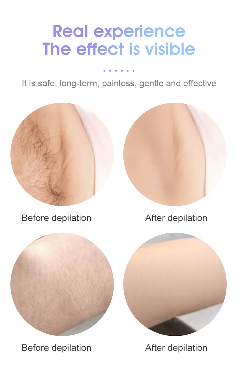 The effect of permanent hair removal, fast speed, good effect, high safety, no side effects, painless, shrink pores, moisturize the skin and other advantages.