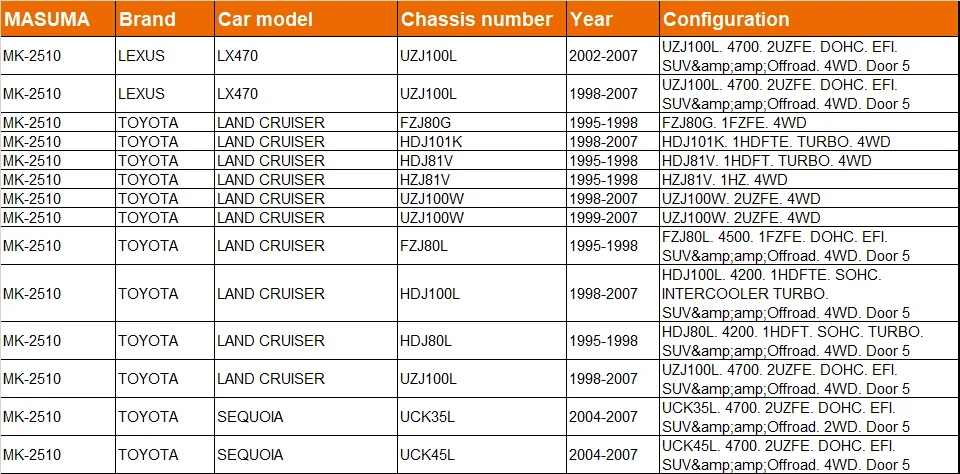 MASUMA No. | MK-2510 |