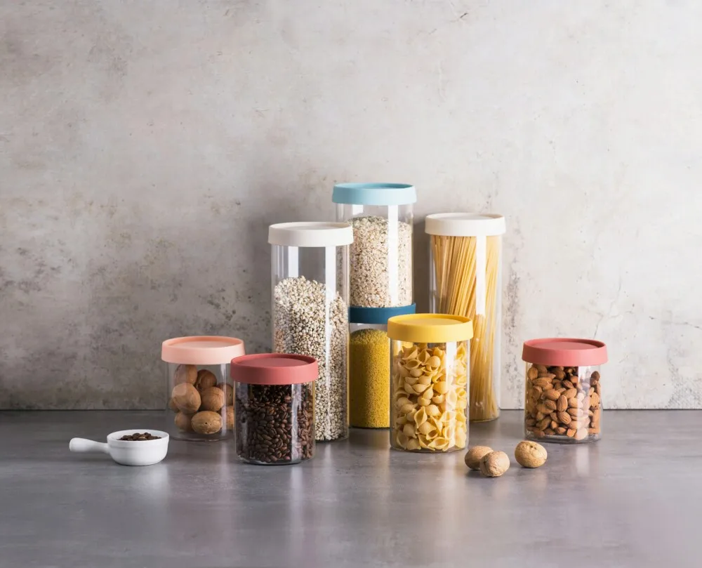 Кухонные штабелируемые кухонные банки набор прозрачных стеклянных банок для хранения продуктов контейнеры с герметичной силиконовой крышкой конфет печенья