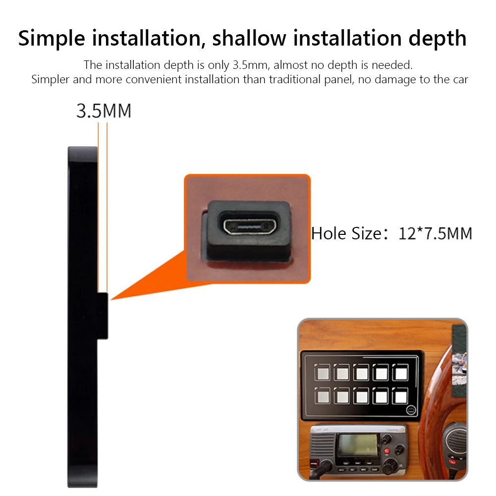 1. Ultra-thin 5mm membrane panel switch, smaller than traditional rocker switch, easy to install-no installation depth, small drilling, more beautiful installation, and space saving
