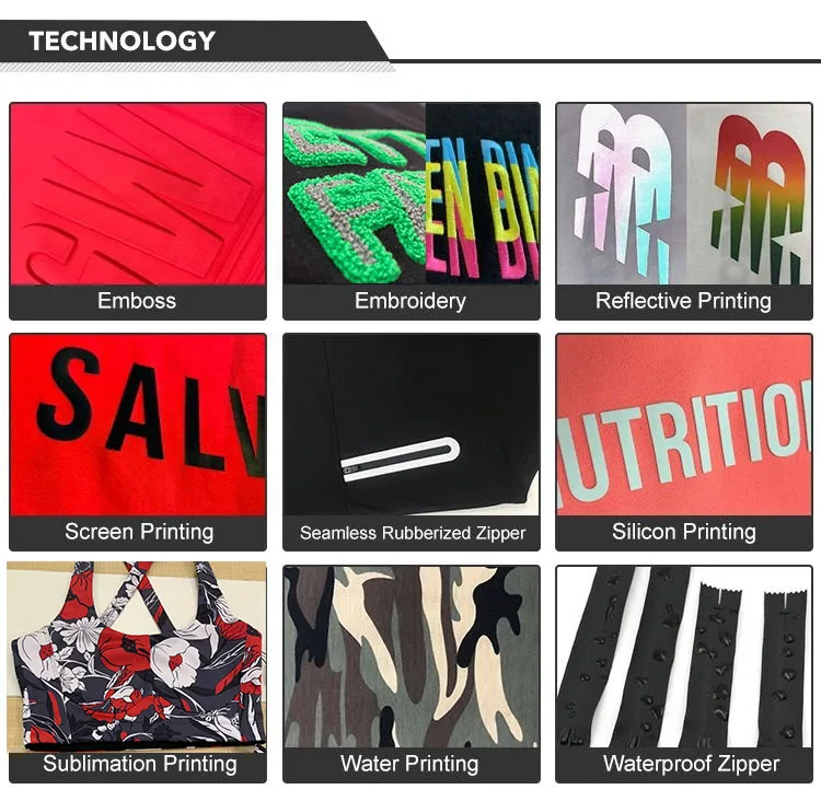 Printing | Water based printing, Plastisol, Discharge, Cracking, Foil, Burnt-out, Flocking, Adhesive balls, Glittery, 3D, Suede, Heat transfer etc. |