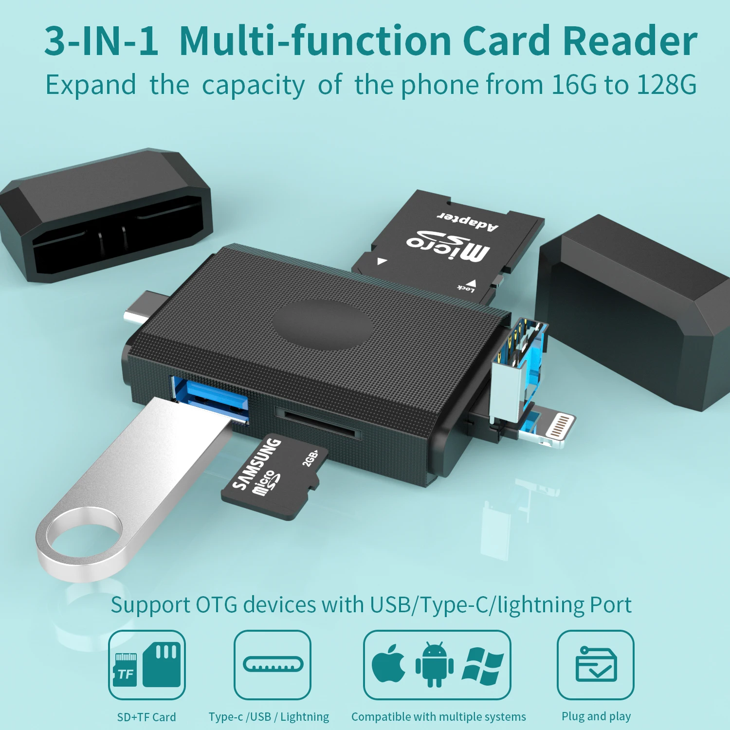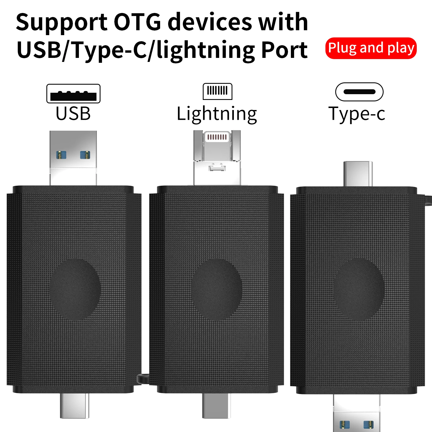 Products name | 3 IN 1 ABS Shell Type C/Lighting/USB3.0 Card reader |
