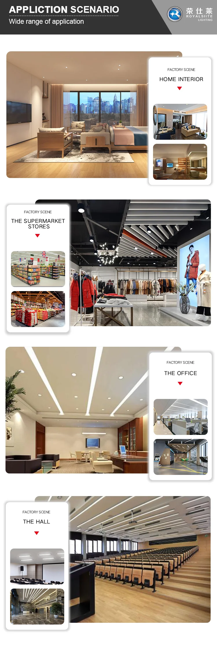 The company is a high-tech enterprise integrating R & D, production, sales and service. It focuses on the R & D and manufacturing of LED lamp, constantly introduces the world's advanced production equipment and adopts international synchronized quality standards for management. Through the research and introduction of the latest core technology and product design, Royalslite has always lead the development trend of the lighting market and products.