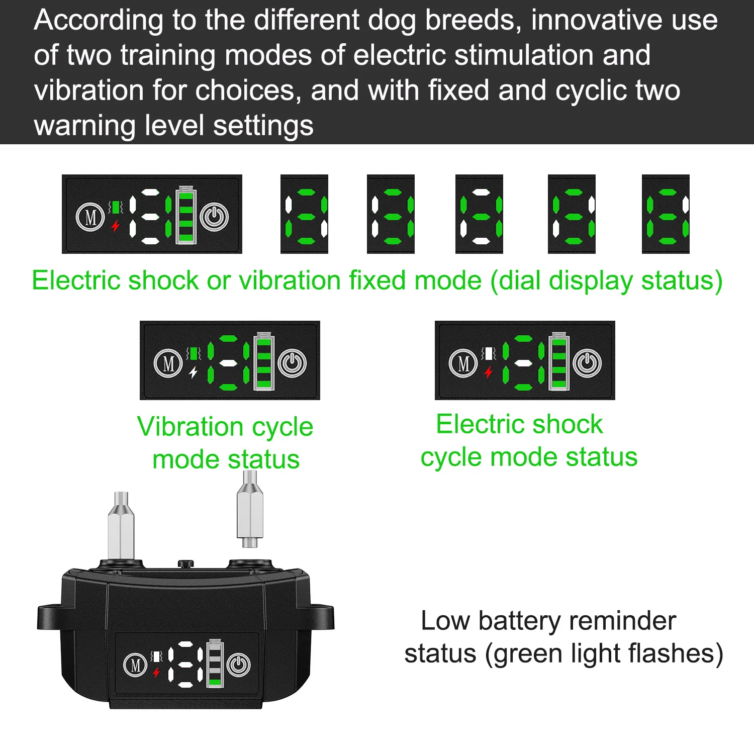 9. 500mAh Lithium Battery, 15 Day Use Time. 10. Smart Pet Protection Mode, No Excessive Shock To Your Beloved Dog.