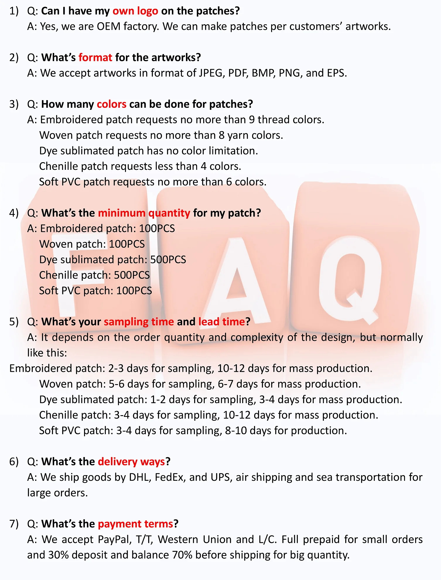 Shipping | Express: Fedex, DHL, TNT, UPS |