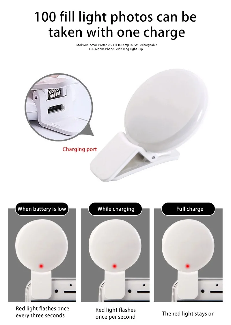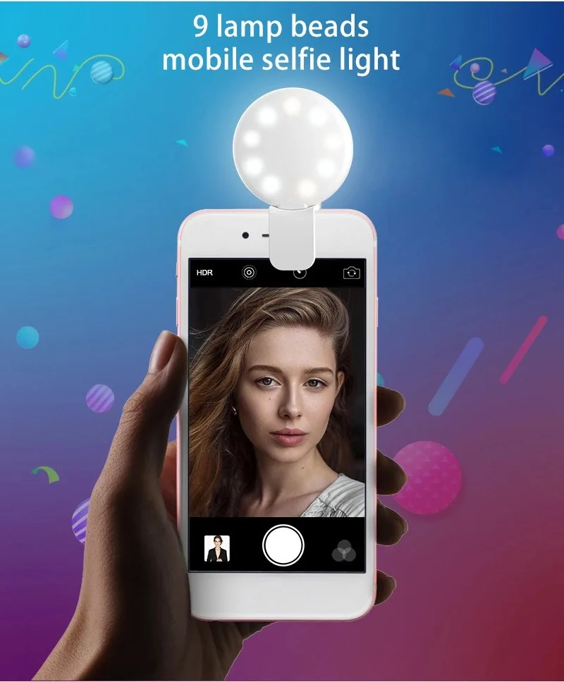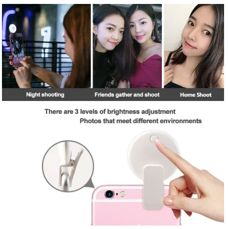 customized logo clip on cell phone selfie flash light ring | |