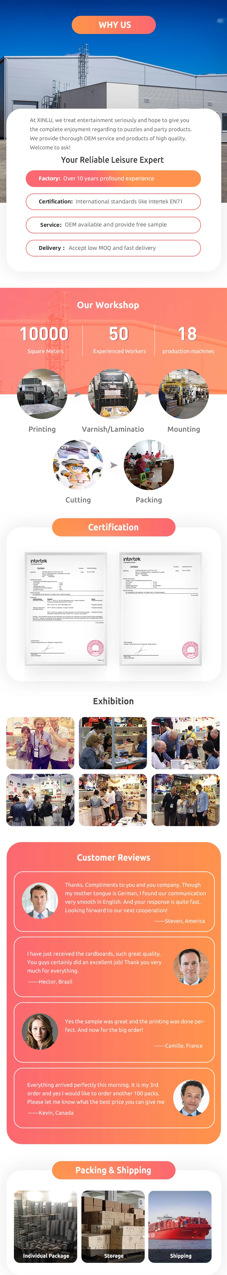 Время доставки зависит от продукта. В основном, это 15-20 дней после подтверждения заказа. И если у нас есть запас, который вам нужен, мы можем отправить товар в течение всего 3 рабочих дней после подтверждения.