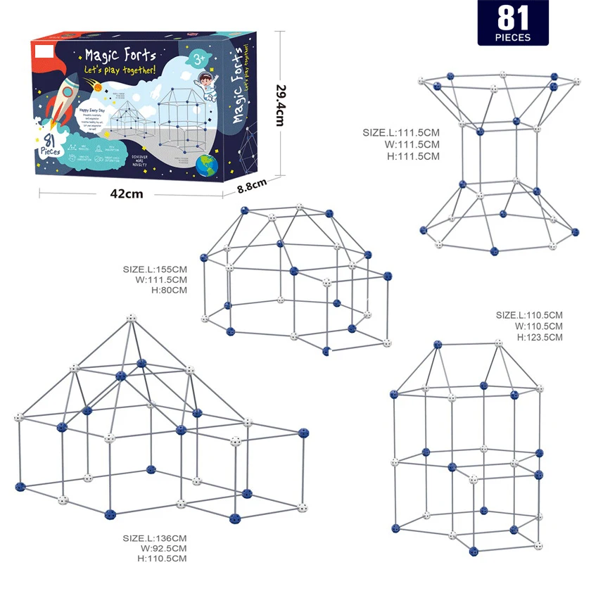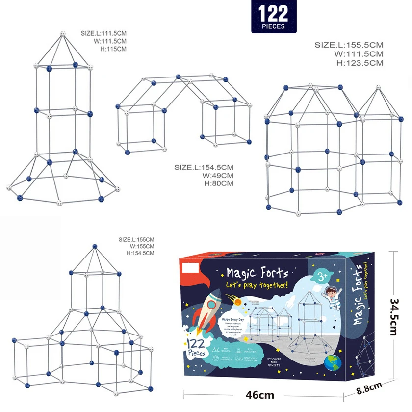 5.Size of tent: 37" long x 28" wide x 40.3" high. Provides ample space to accommodate up to 4 kids at once.
