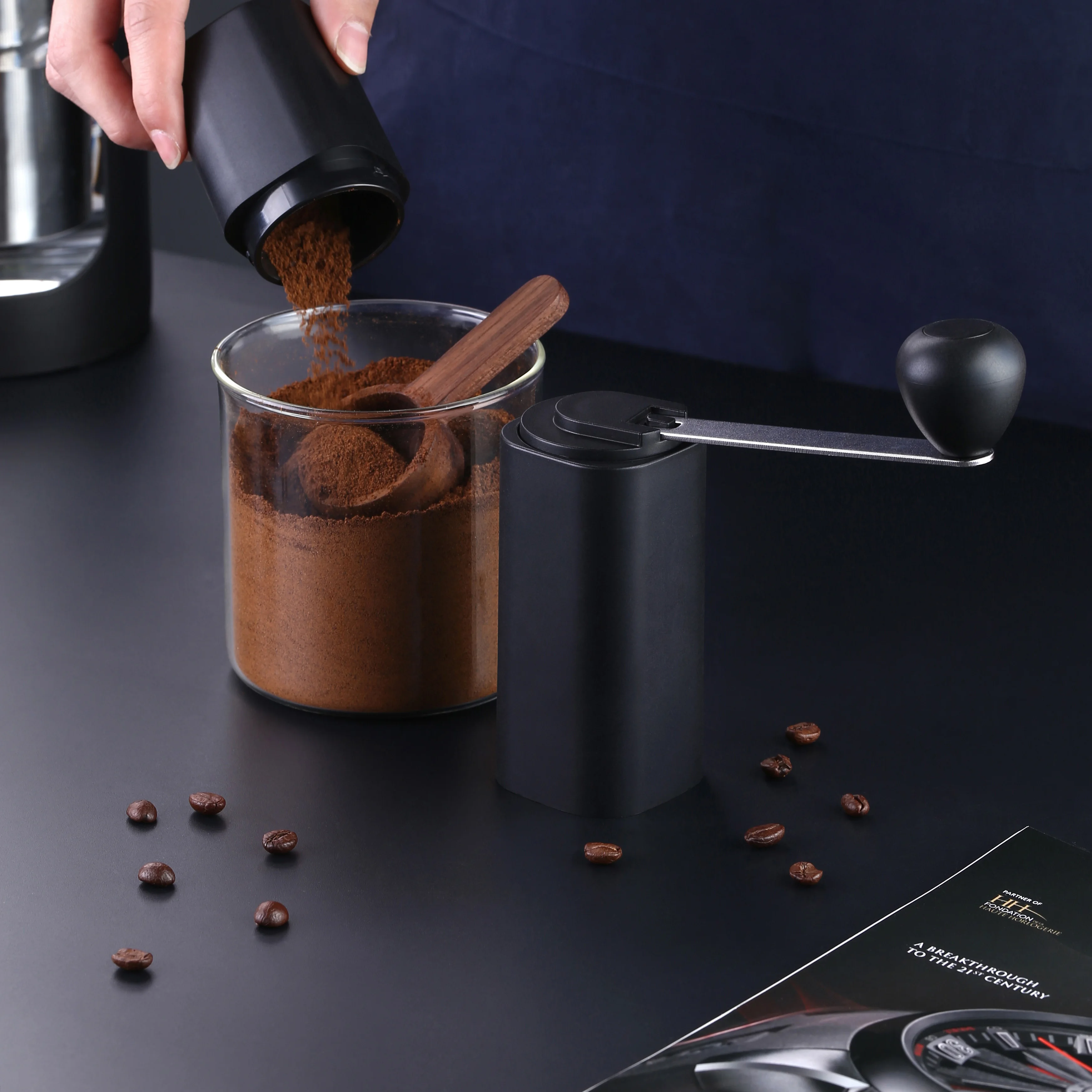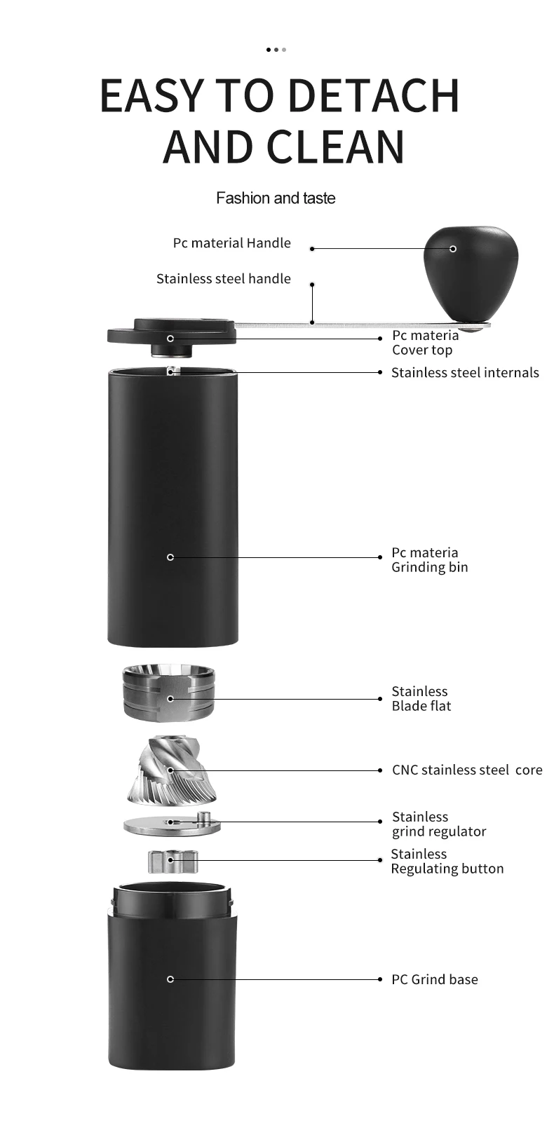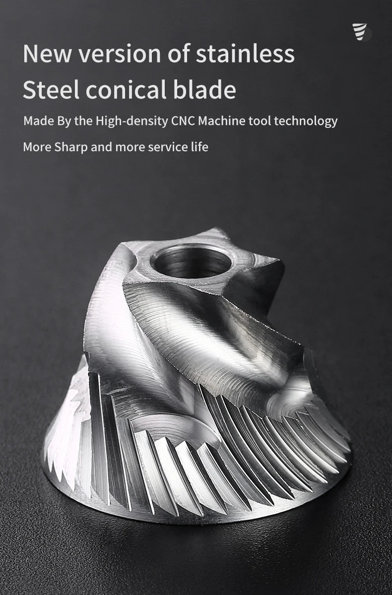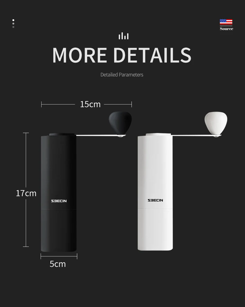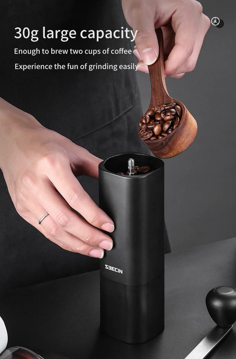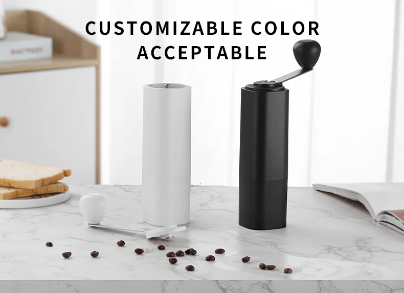 Removable hand crank mechanism consistently eliminates over 90% of the noise that electric grinders produce. No batteries, power, or long plastic cords