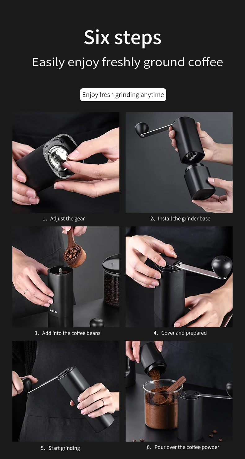 Built-in Adjustable Grind Selector : Equipped with over 12 click settings ensures you have 100% precision & control over the coarseness of your coffee beans making for the perfect grind to start your day.