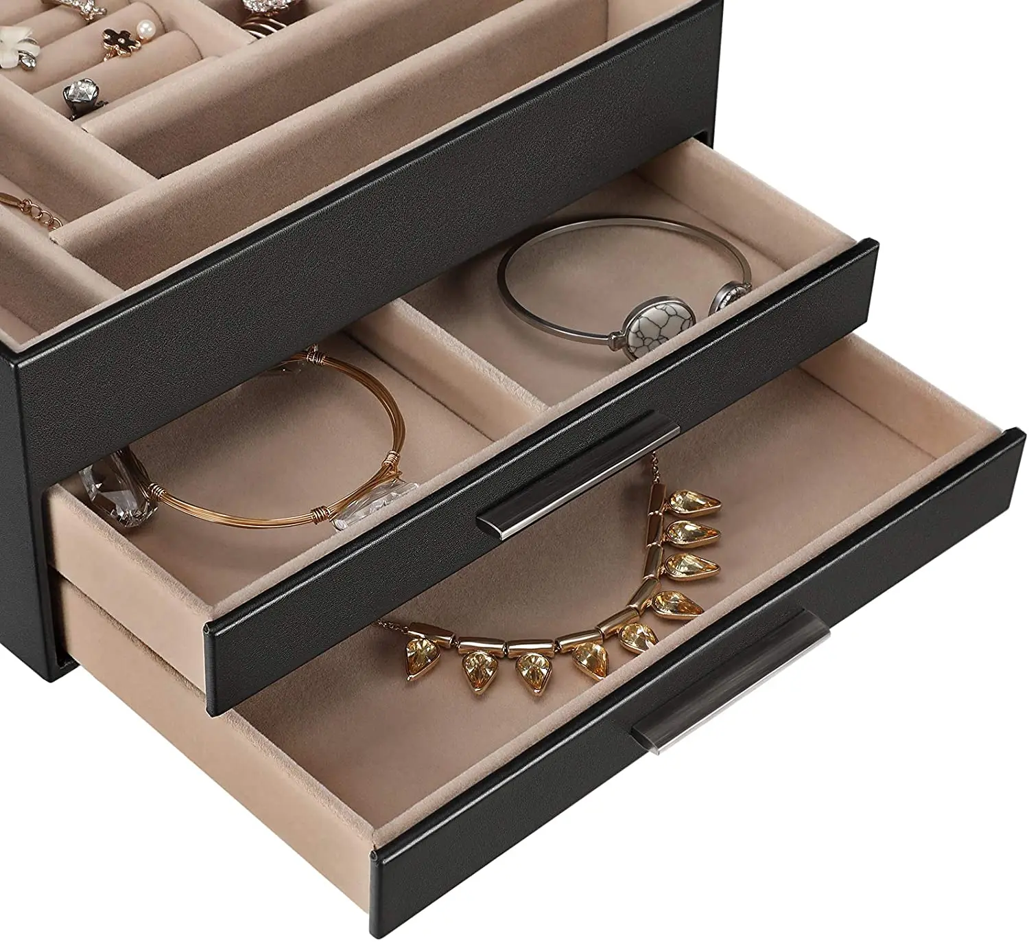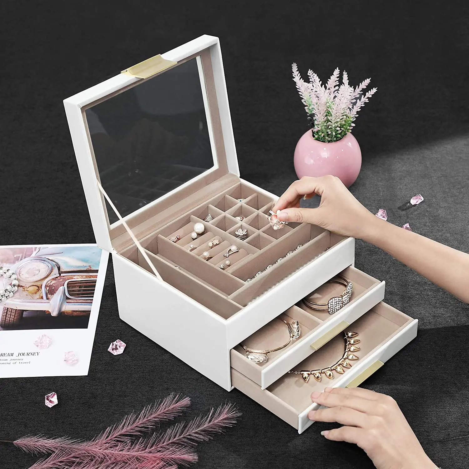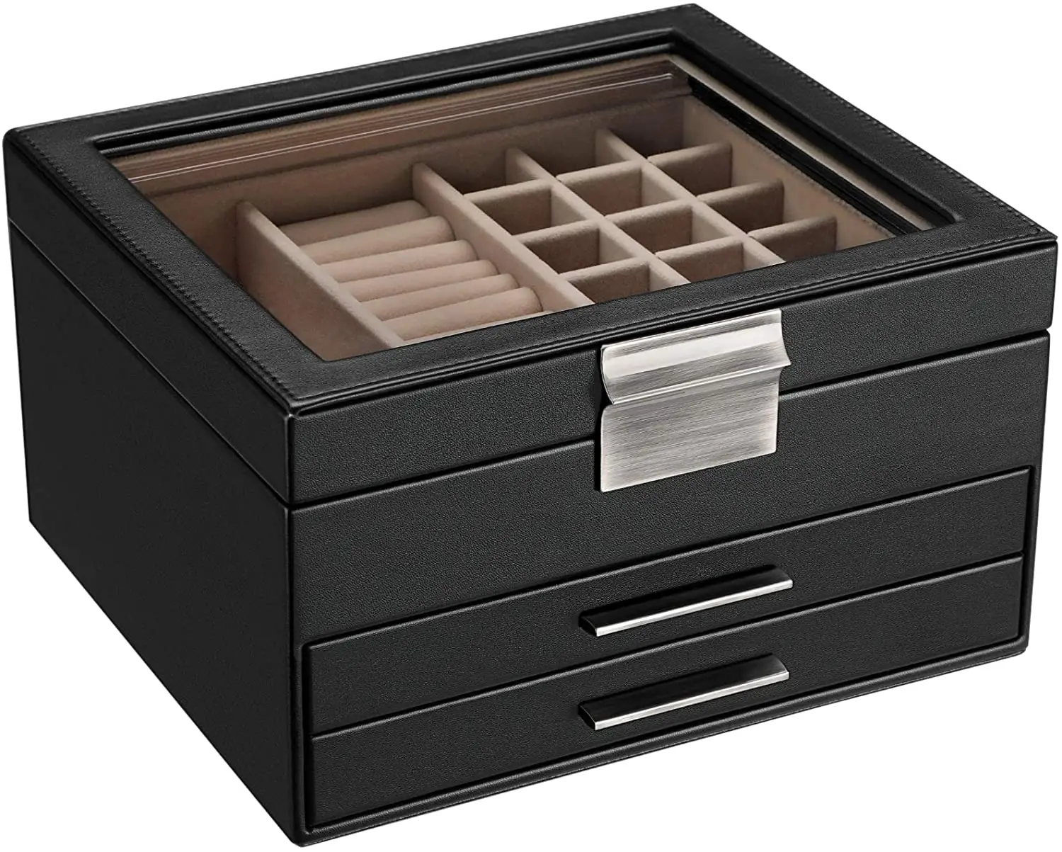 Название продукта | Модный Ювелирный ящик с современным дизайном кожаный чехол мягкий бархат интерьер три слоя хранения ювелирных изделий стеклянный Топ дисплей |