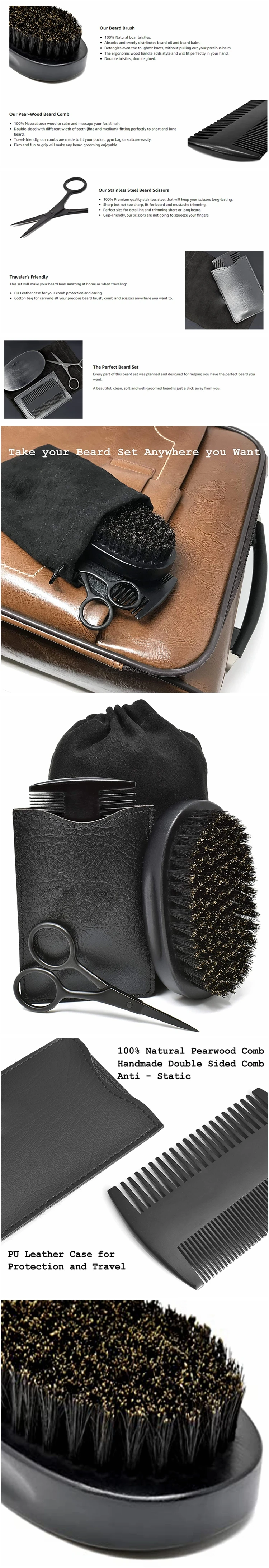 Custom Beard Brush Bear Comb And Stainless Steel Trimming Beard Scissors For Men Grooming