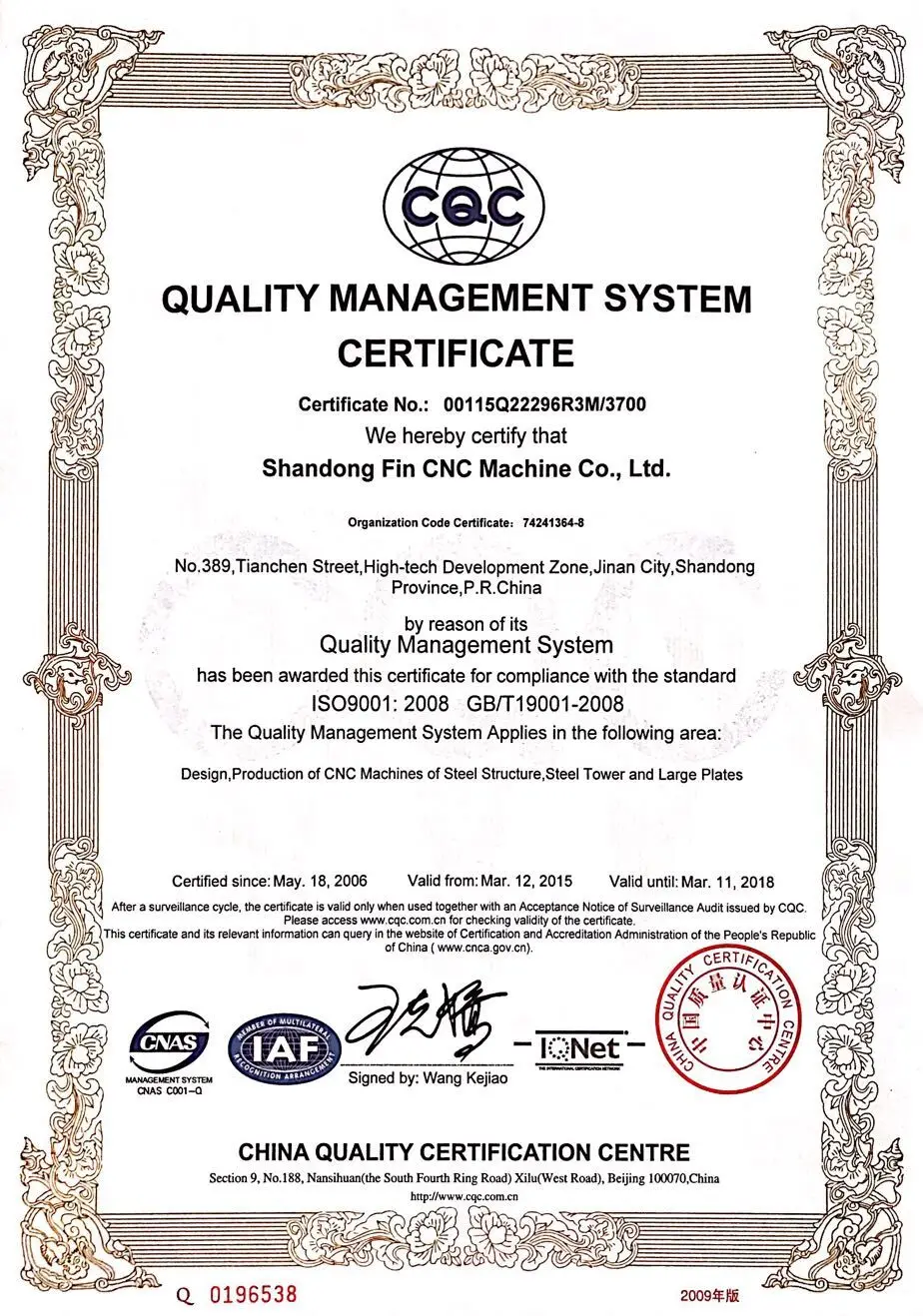 1.Technical specification of APM0908 1) Angle size: ∠40*40*3~∠90*90*8mm 2) Max. punching diameter:φ25.5mm(8mm thickness, material type Q345) Nominal punching force: 350KN 3) Quantity of punching head per side: 2 4) The quantity of punching row per side: arbitrariness 5) The quantity of character group: 4 groups 6) Dimension of characters: 14*10mm (18 Nos.) 7) Nominal Marking force: 1030KN 8) Max. length of the raw angle: 12m 9) Cutting mode: Single-blade shearing 10) Nominal Shearing force: 1000KN 11) Quantity of CNC axes: 3 12) The finished angle conveyor is rotated to one side by pneumatic power, the max. length of finished angle is12m. 13) There are four sets of transverse conveyor, infeeding automatically and intermittently 14) Angle feeding Speed: 60m/min 15) Production efficiency is about 60 holes/min. 16) Type of programming: keyboard input, USB interface input, floppy disc input. 17) Layout: A or B type 18) Working environment: Working temperature: 0℃~ 40℃ Power: Three phase four wire system AC Voltage: 380V Fluctuation of voltage: ±10% Frequency: 50 Hz 19) Hydraulic station cooling method: water cooling |