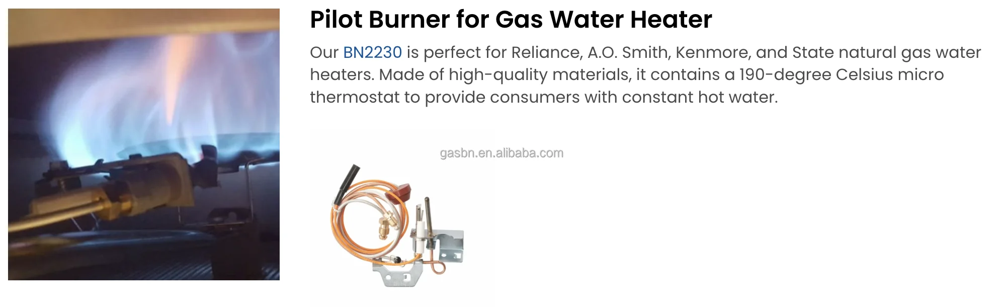 Application | Gas heater/ BBQ/ Pizza oven/ Fireplace/ Water heater/ Gas stove |