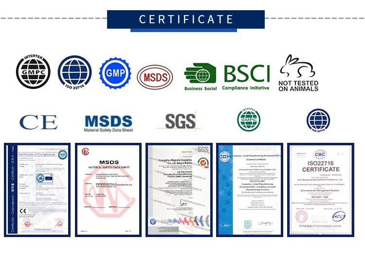 Certification | MSDS, GMP, COA, CE, ISO22716, TUV, SEDEX | ||||||