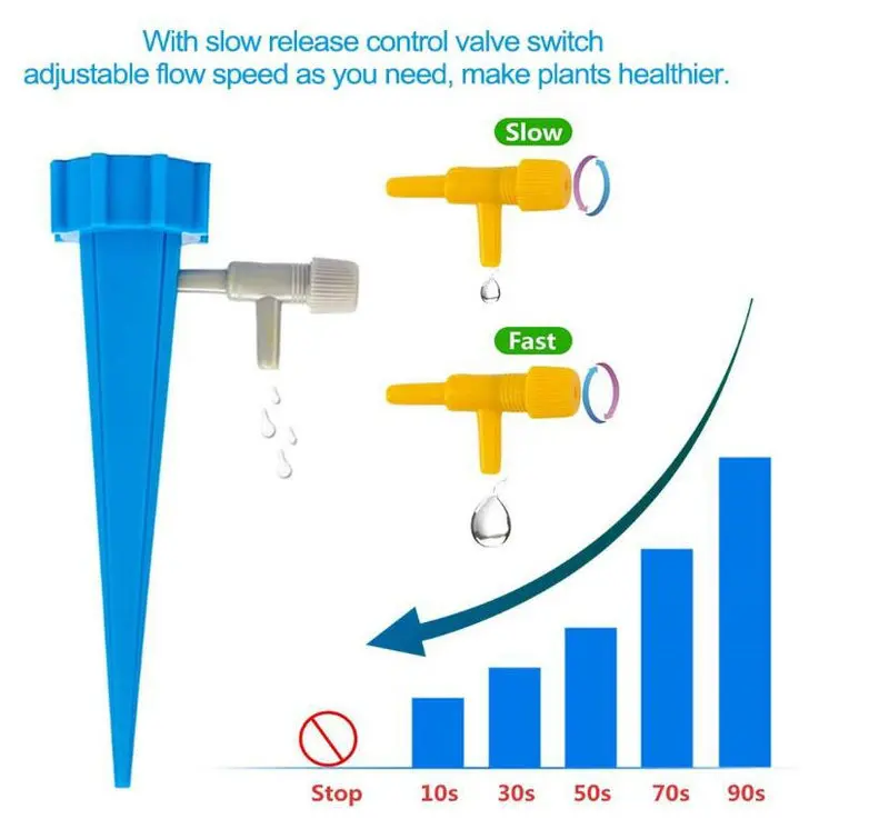 * [Регулируемая скорость потока дизайн]: Этот полива растений устройства состоит из медленно релизе управления переключатель клапана. Автоматический водонагреватель растений не будет блокироваться грязью, обеспечивая точное крепление доставки воды, делая растения более здоровыми.