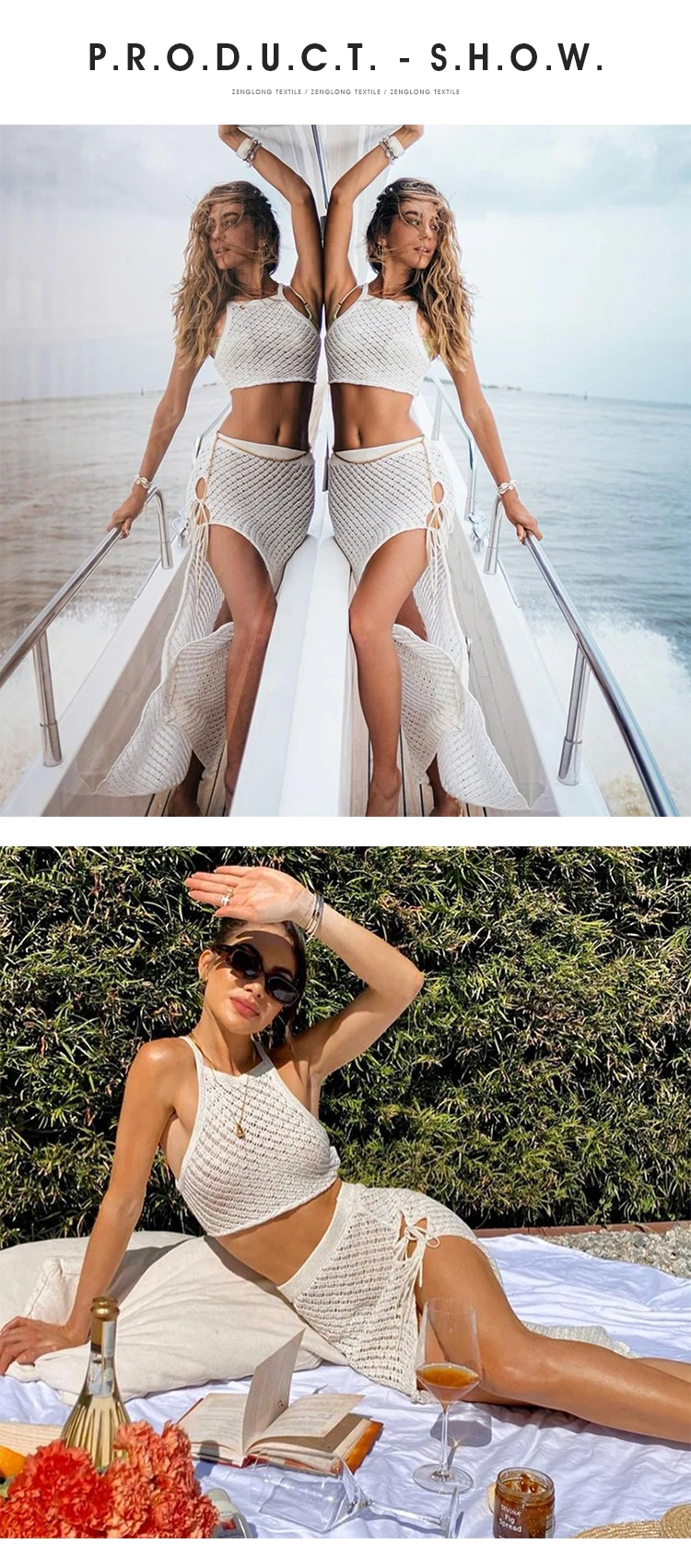 ZENGLONG модная Женская Летняя трикотажная одежда сексуальные топы для девушек пляжная юбка комплект из двух предметов женский свитер с плечевыми