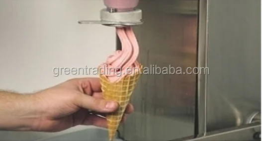 4.\tUse ice cream, in a cone or cup, below the valve on the liquid outlet, press the handle of discharge, and can have ice cream extruding, back into the handle off.