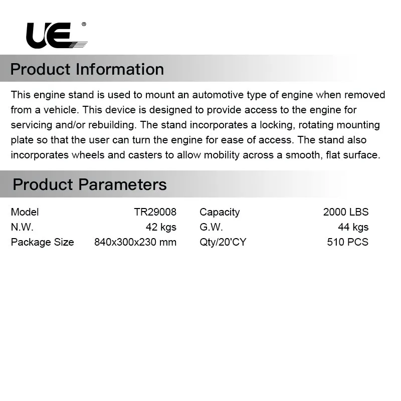 Model | TR29008 | Capacity | 2000LBS |