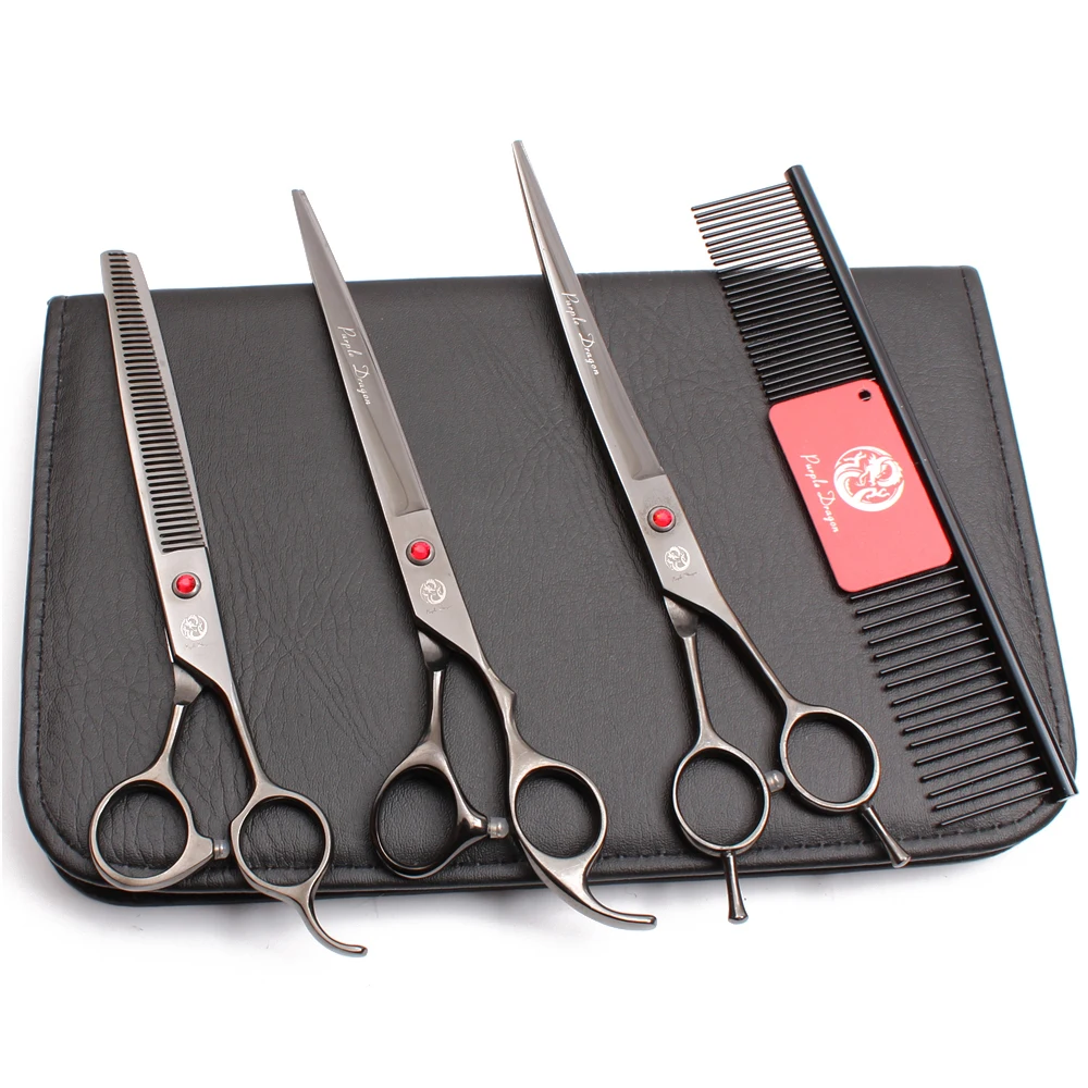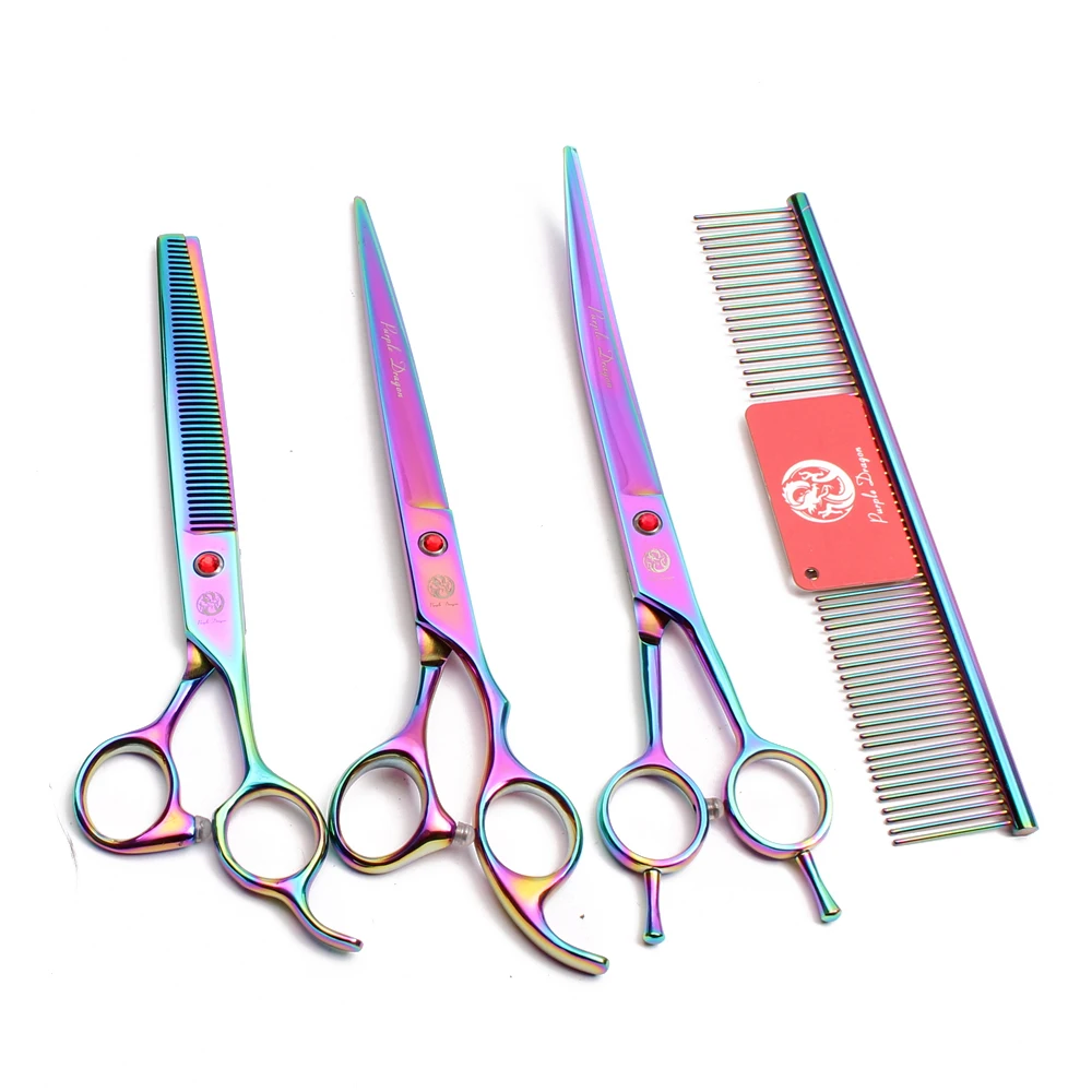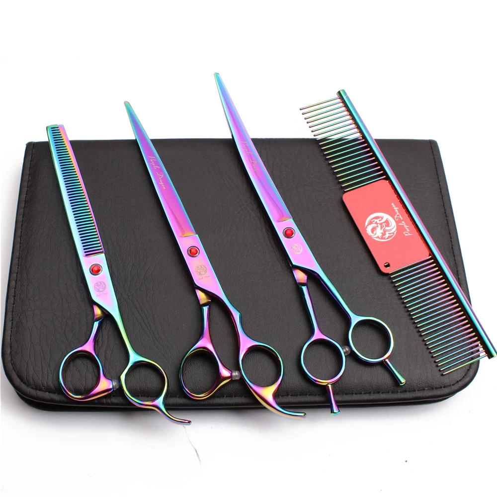 Японские Стальные Ножницы для груминга домашних животных 8 дюймов фиолетовый дракон стрижки собак прямые филировочные