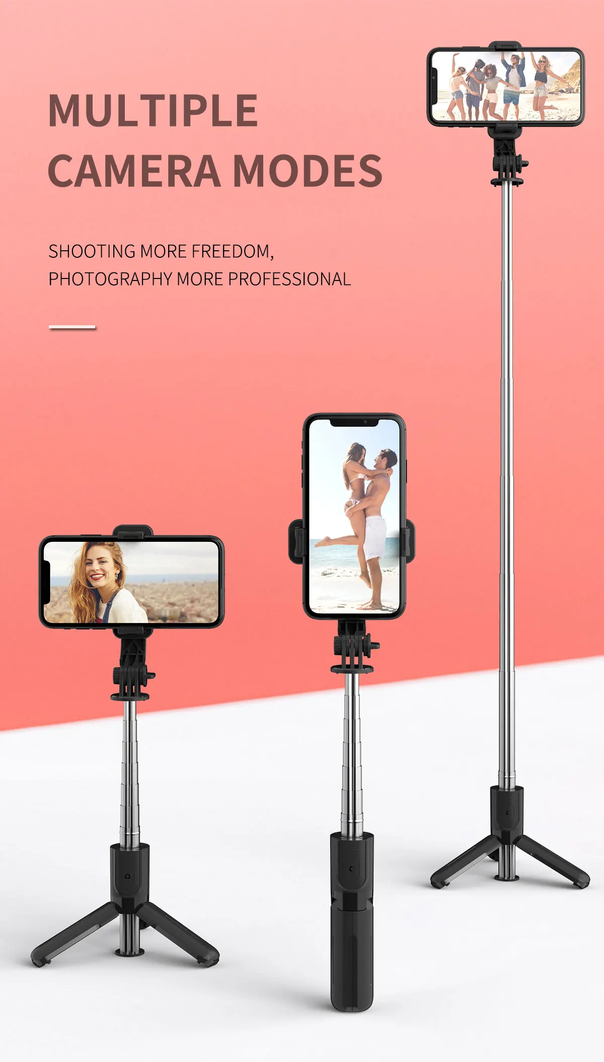 L11 Selfie Stick Tripod Aluminum Mini Folded Selfie Stick and Phone Tripod with 360 Rotation Detachable Remote Tripod | ||||||||