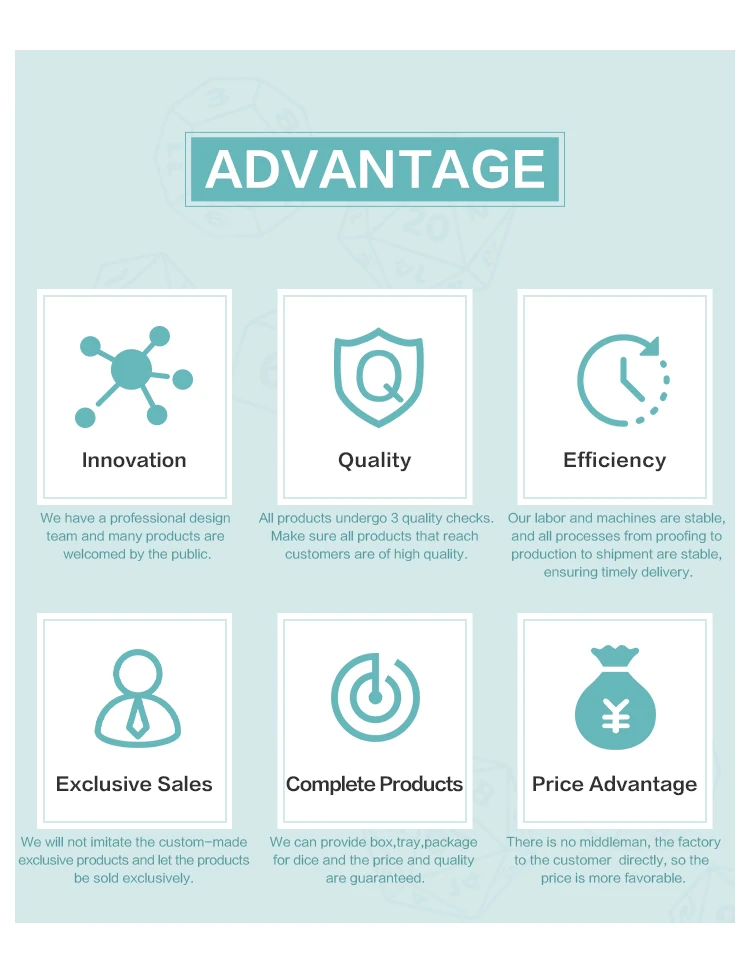 Our Vision:To create dice that player's love. Help wholesalers create wealth and provide satisfactory services.