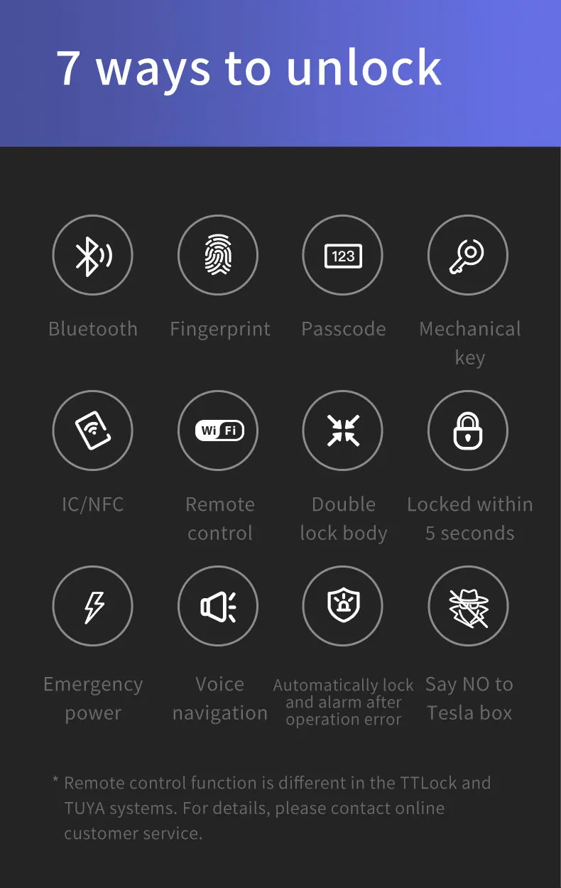 Unlock way | APP, Fingerprint, Password,code, Key |