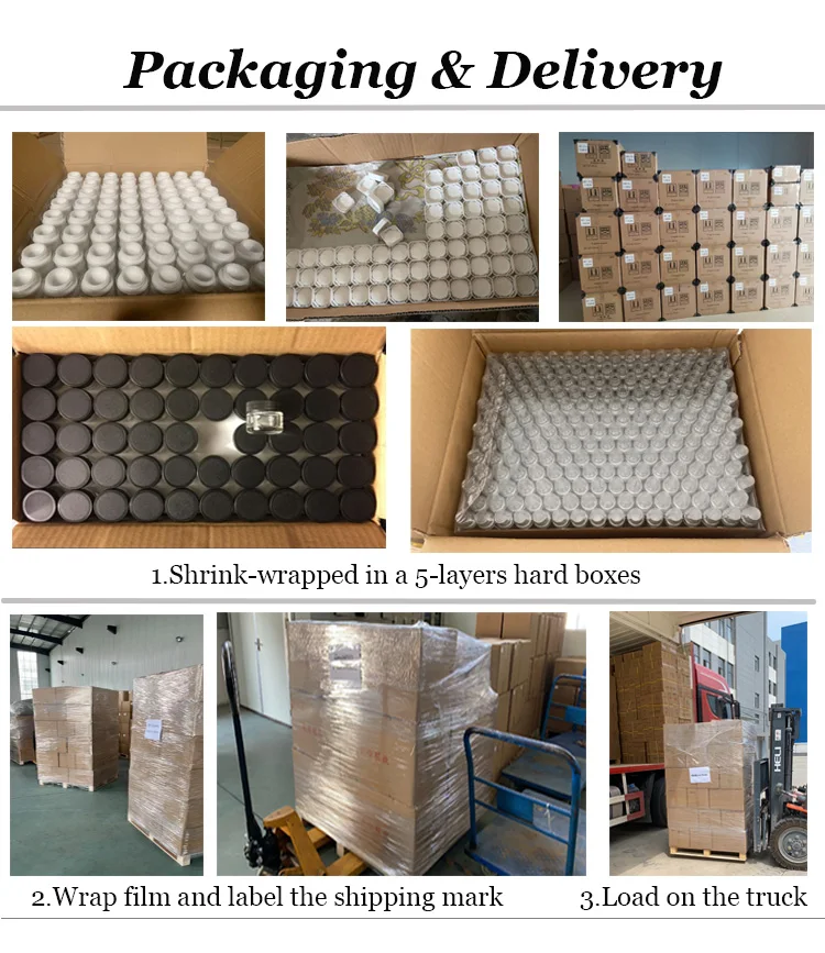 Using carton and bubble paper to protect glass bottle from impact , then we will fix the carton with stretch film. For each glass bottle/jar order, we will prepare 2% of whole quantity goods as backup.