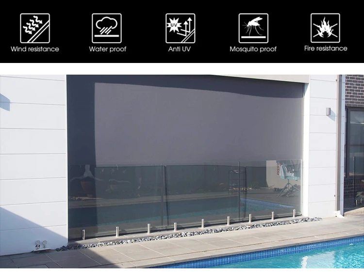 Waterproof Woterprof Heavy Duty Window Screen Wind Sunshade Wholesal Patio Shade Motorized Retractable Exterior Patio Blinds