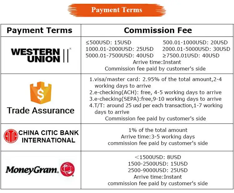 Payment | Paypal, western union, bank transfer,moneygram etc. |