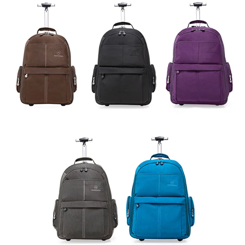 Одноцветный водонепроницаемый многослойный рюкзак для ноутбука с колесами для путешествий |