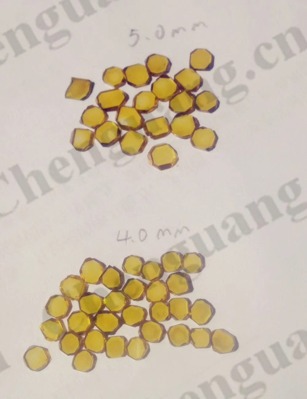 Features | 1.Large size(up to 7 x 7 x 1 mm) 2.Hardness and high mechanical stability 3. Scratch proof and wear resistance 4.Wide spectral transparency UV to THz 5.High Strength and Great Thermal Stability 6.Yellow Color 7.Other quality index could reach the international standard |