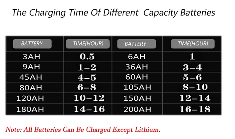 Suitable Capacity | 3AH-200AH |