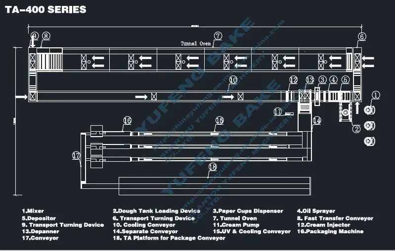 Our TA series is to offer turnkey solution for producing cakes, such as bear cakes, cupcakes, Madeleine, custard cakes, ring cake with minimal manual input, optimum throughput and maximum output.