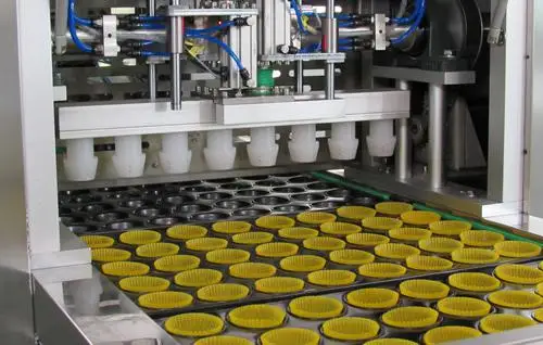 c- After baking, labor sends the moulds to fill cream into madeleine cakes that have been baked and thermoformed.