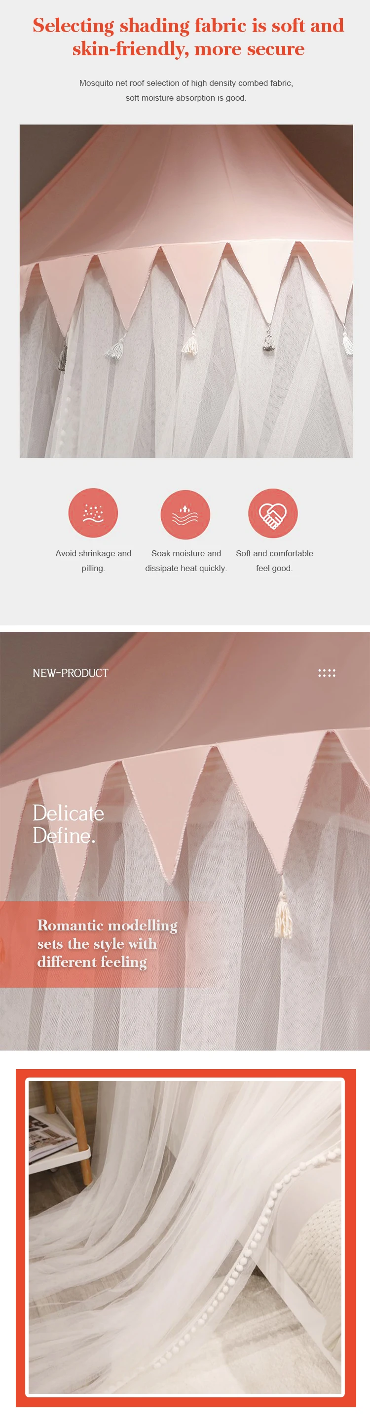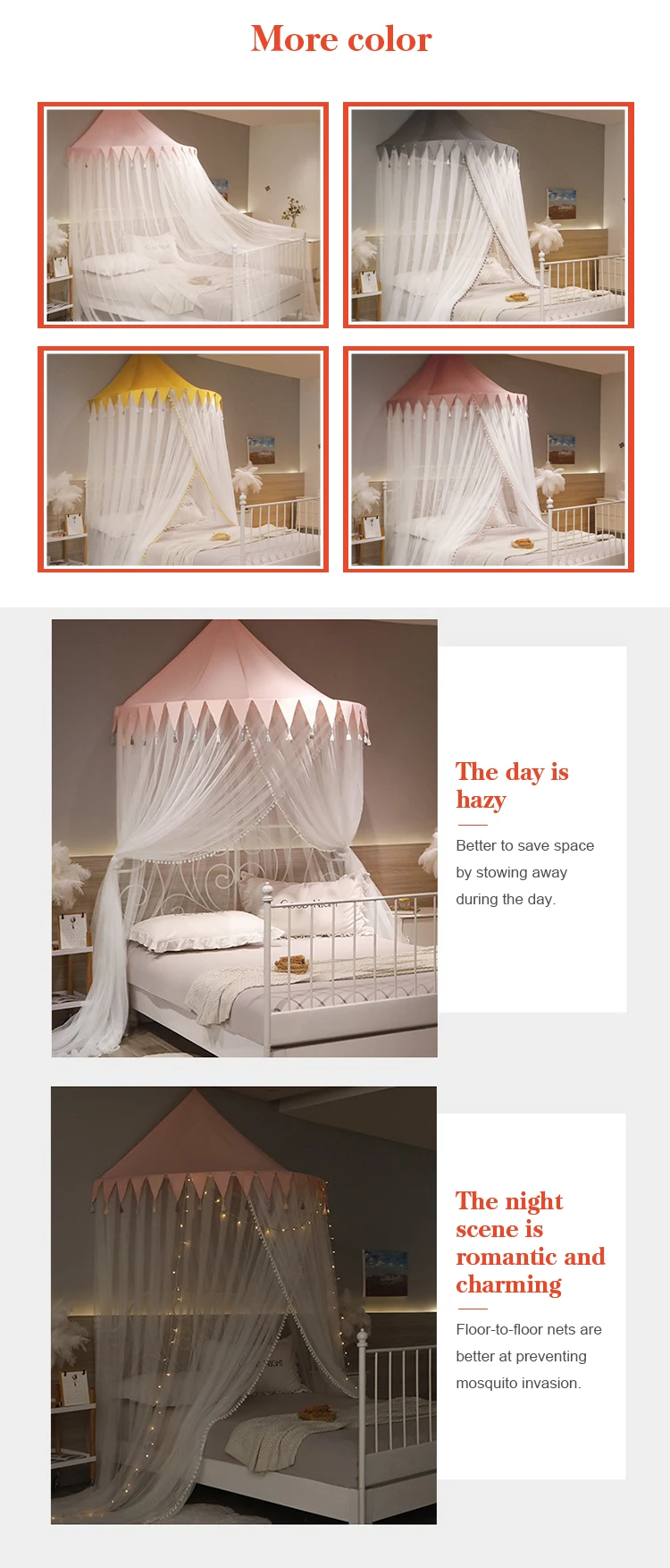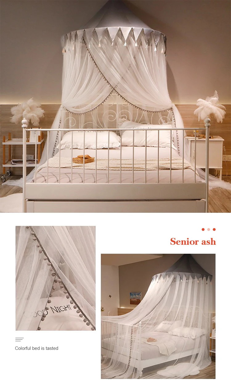 Hot Sale European Style Home Princess Lace  Larger Space Encryption Double Bed Round Ceiling Mosquito Net