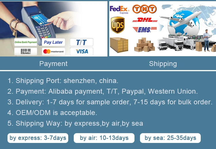 A: We usually ship by DHL, UPS, FedEx or TNT. It usually takes 3-5 days to arrive. Airline andsea shipping also optional.