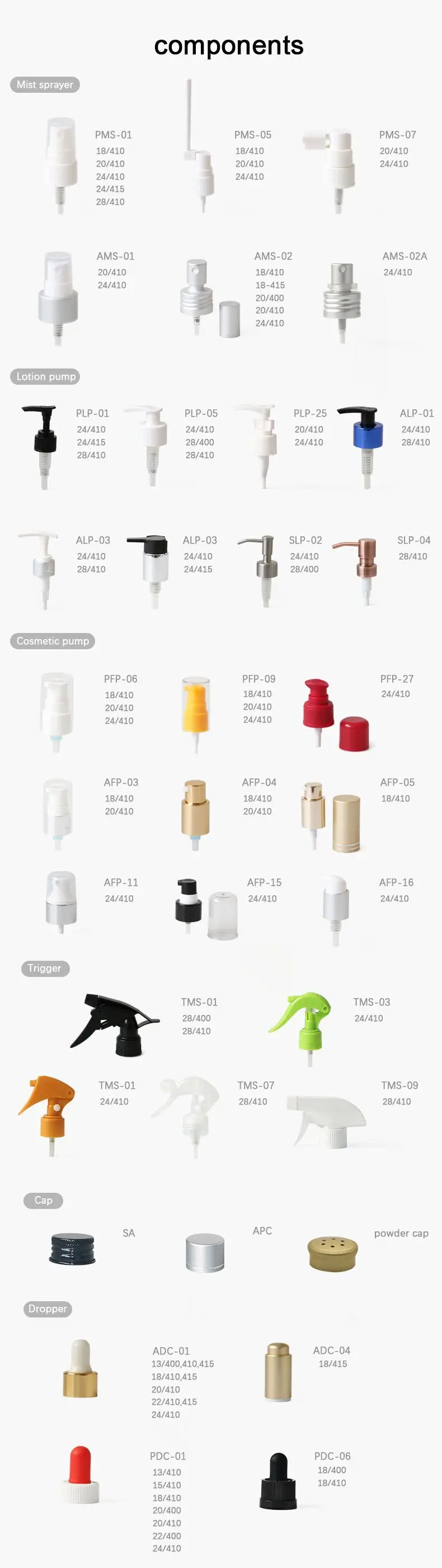 Custom printing | Screen printing, heat transfer printing, hot stamping, water transfer printing, offset printing or labeling | Opening | 20mm / 24mm / 28mm / 30mm / 38mm |