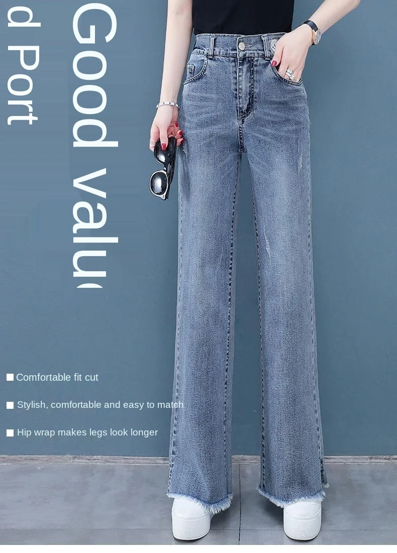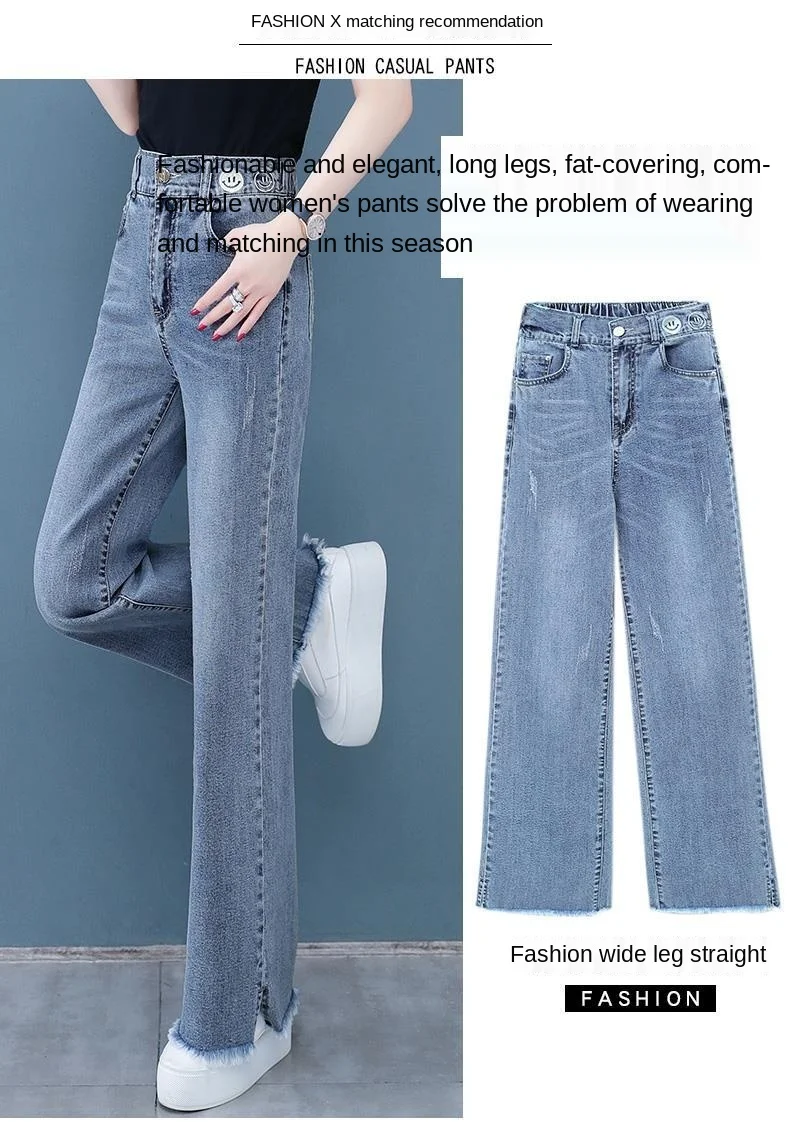 Широкие 2021 новая высокая талия Свободные прямые все-матч тонкий женские