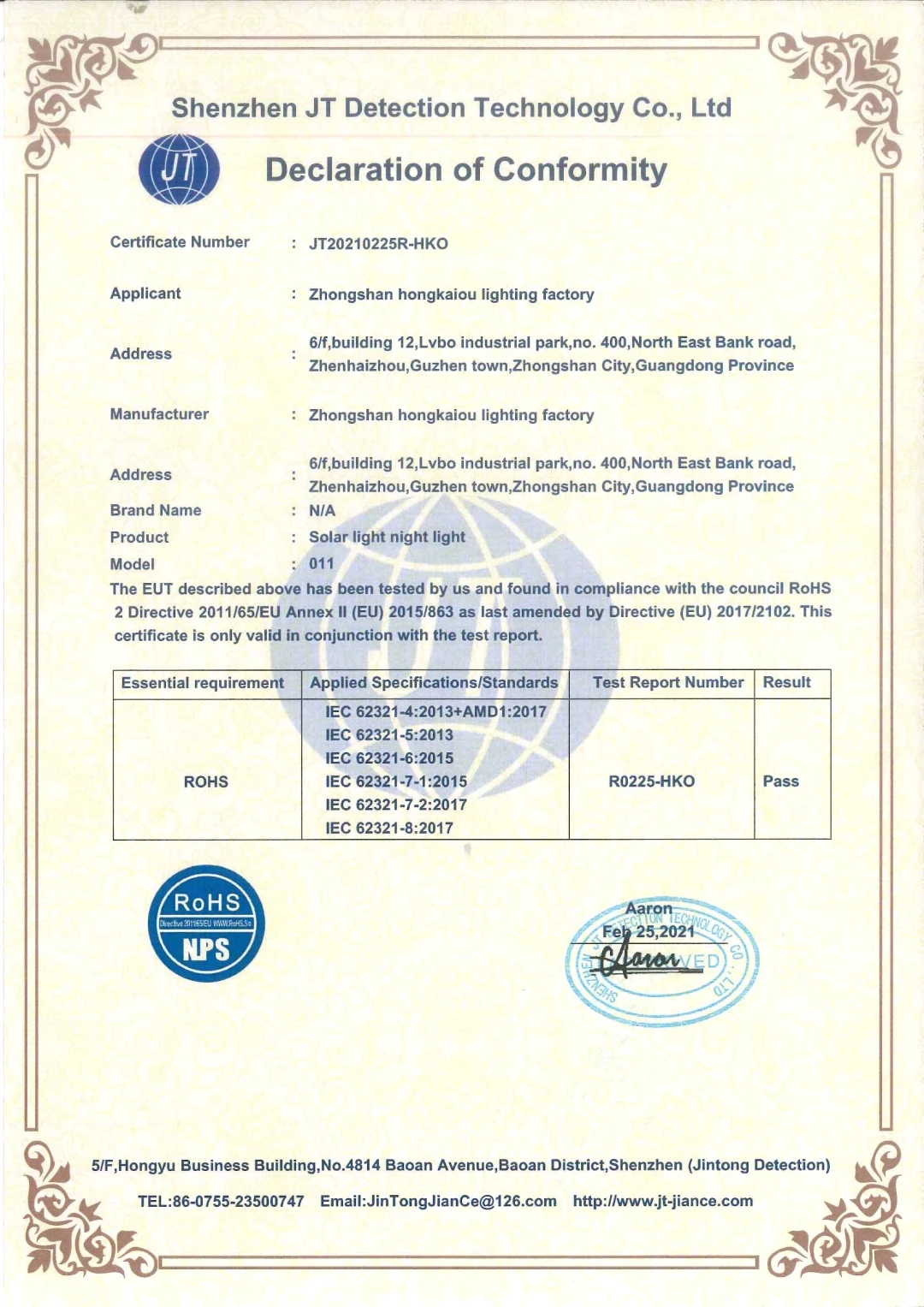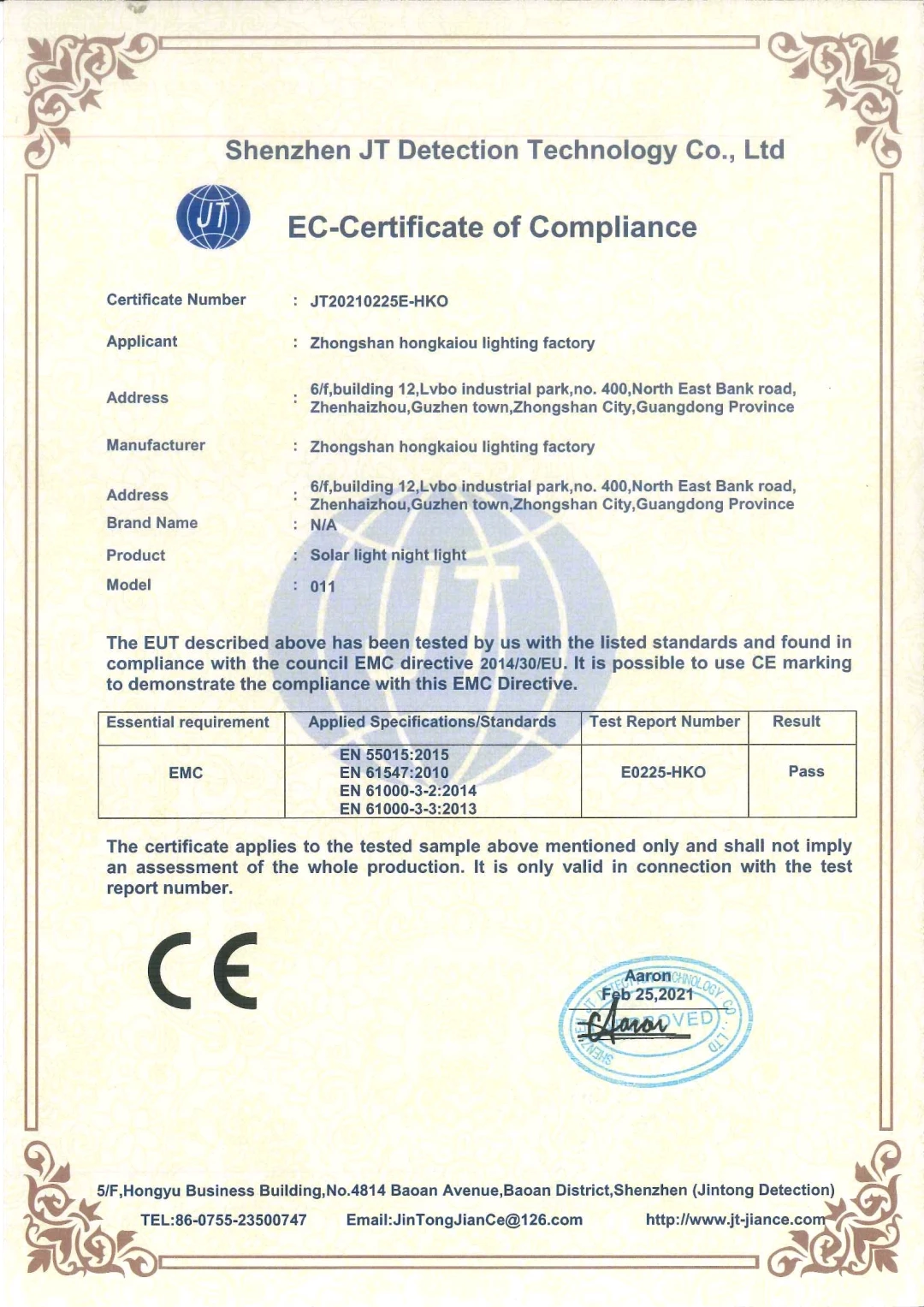 Certification | ce, RoHS, EMC |