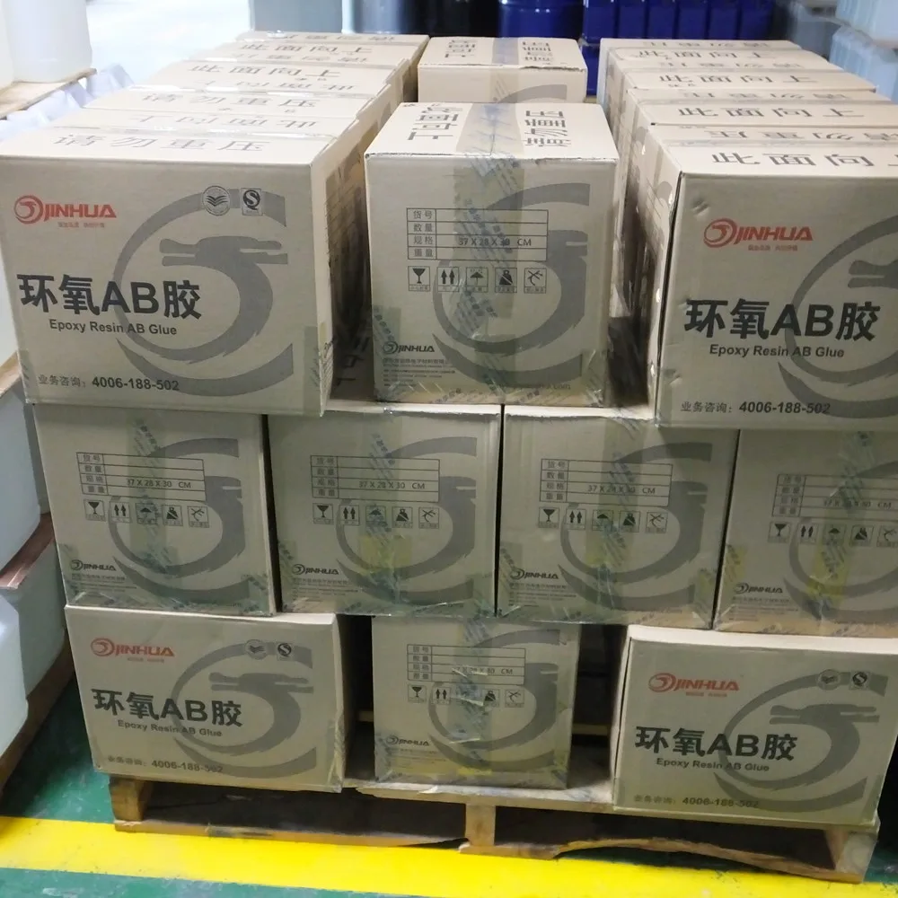 Jinhua mainly produce all kinds of epoxy resin glue which covered a very large range of applications: Soft AB glue for stickers, LED strip potting, badge, nameplate, nail cutters, key-chain; Hard clear resin for LED channel letters, photo frame coating, hand made diamond, jewelry, crafts, necklace, bangles, bracelets, earrings,rings, miniatures such as simulated water, soup, liquid drinks and fishbowl to be used in a child's dollhouse, anything you can image clear and shinning, but cheap and easy to operate; Coating resin for surfboard, paddle, Christmas ball, globe, foam products coating, bicycles, boats, golf clubs,skies, snowboards, swimming pool, garage, wood table coating, Epoxy flooring, to make it hard and durable; Special adhesion for wood, metal, glass, stone and some plastic, with very strong and high durable bond after cured;Flexible potting resin for electronic products such as motors, generators, transformers, swith-gear, insulators, mold filling,LEDs, perfectly to protect the potting items from short circuit, dust, water, and moisture, and giving the potting items a more stable and longer life than unpotted products. With the belief of "honest, harmony, creative, preciseness" and abundant experience, Jinhua people will always offer best solution to worldwide customers. With the principle of Service first, customer foremost, we will be your most valuable and faithful cooperator! We are looking forward to a mutual beneficial cooperation with the friends all over the world! Welcome to Jinhua! Ask for a best epoxy resin solution from jinhua now!