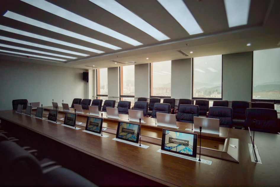 7. Сохраняя стол аккуратным в обычных встречах и поднимая ЖК-мониторы для людей во время мультимедийных встреч.
