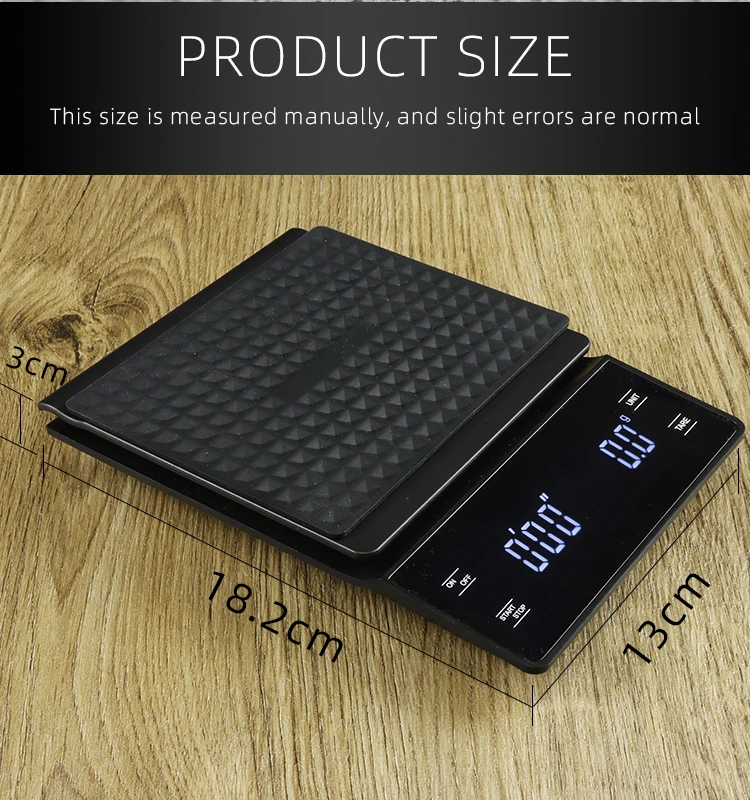 #MULTI-FUNCTIONAL COFFEE & FOOD SCALE# - The electronic coffee scale has a built-in timer to cook and time your coffee to ensure the consistency of each cup of coffee. With Tare Function, You can add different ingredients or coffee powder and water in the same container to make your cooking more accurate and simple.