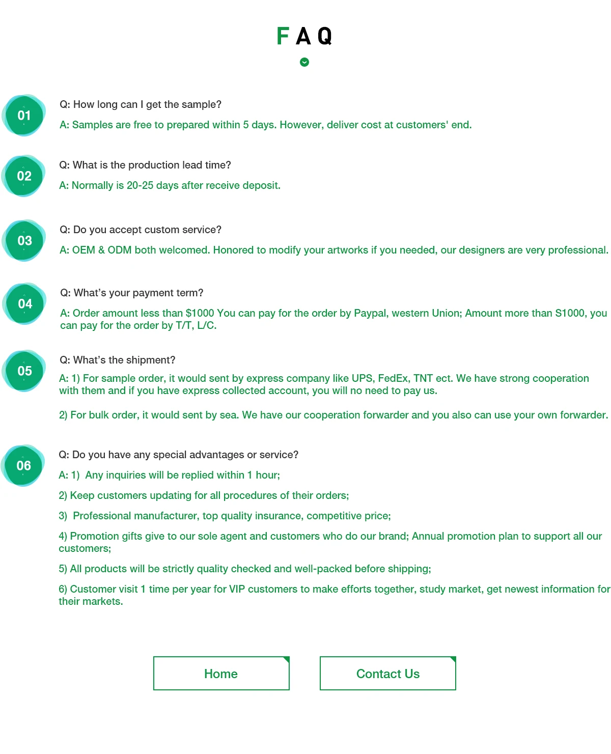 Packing | 50/75/100pcs/box 50/100/200boxes/carton |