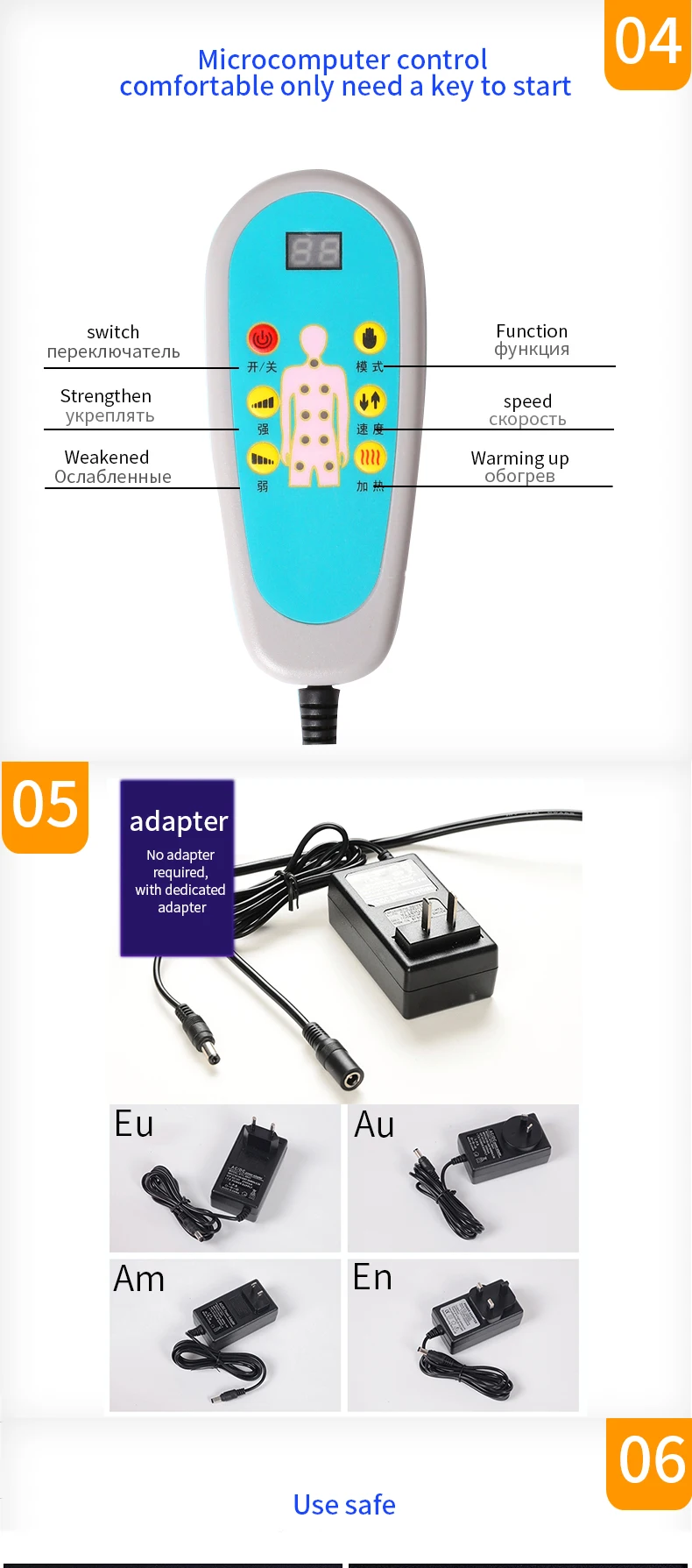 1. Продвинутый микрокомпьютера чип управления технологии, в сочетании с китайской традиционной китайской медицины теория и моделирования от соскальзывания, beat, разминание, ударов, молоток, ударов, прессование, завальцовки и вибрации восемь функций.